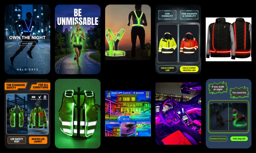 Halo Safety Wear and Led Apparel provides active, high-visibility illumination to protect and prevent accidents by ensuring it is is seen immediately at night and in poor weather conditions